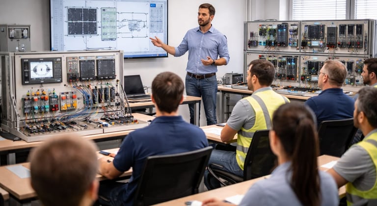 Oferecemos treinamentos técnicos especializados em sistemas de automação industrial, voltados para capacitação de equipes de manutenção, operação e engenharia. Nossos cursos são desenvolvidos com foco prático, utilizando aplicações reais de campo e metodologias orientadas à solução de problemas industriais.